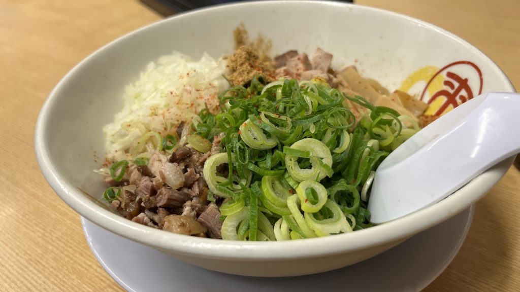 そしてやっぱり麺だけでも美味しい。魚粉やタレを絡ませると旨味がさらにすごいことに。ただ、僕は玉ねぎやねぎが苦手なので、ねぎ系の量は少し多く感じ、後味もねぎ系の味がすごく残って感じました。